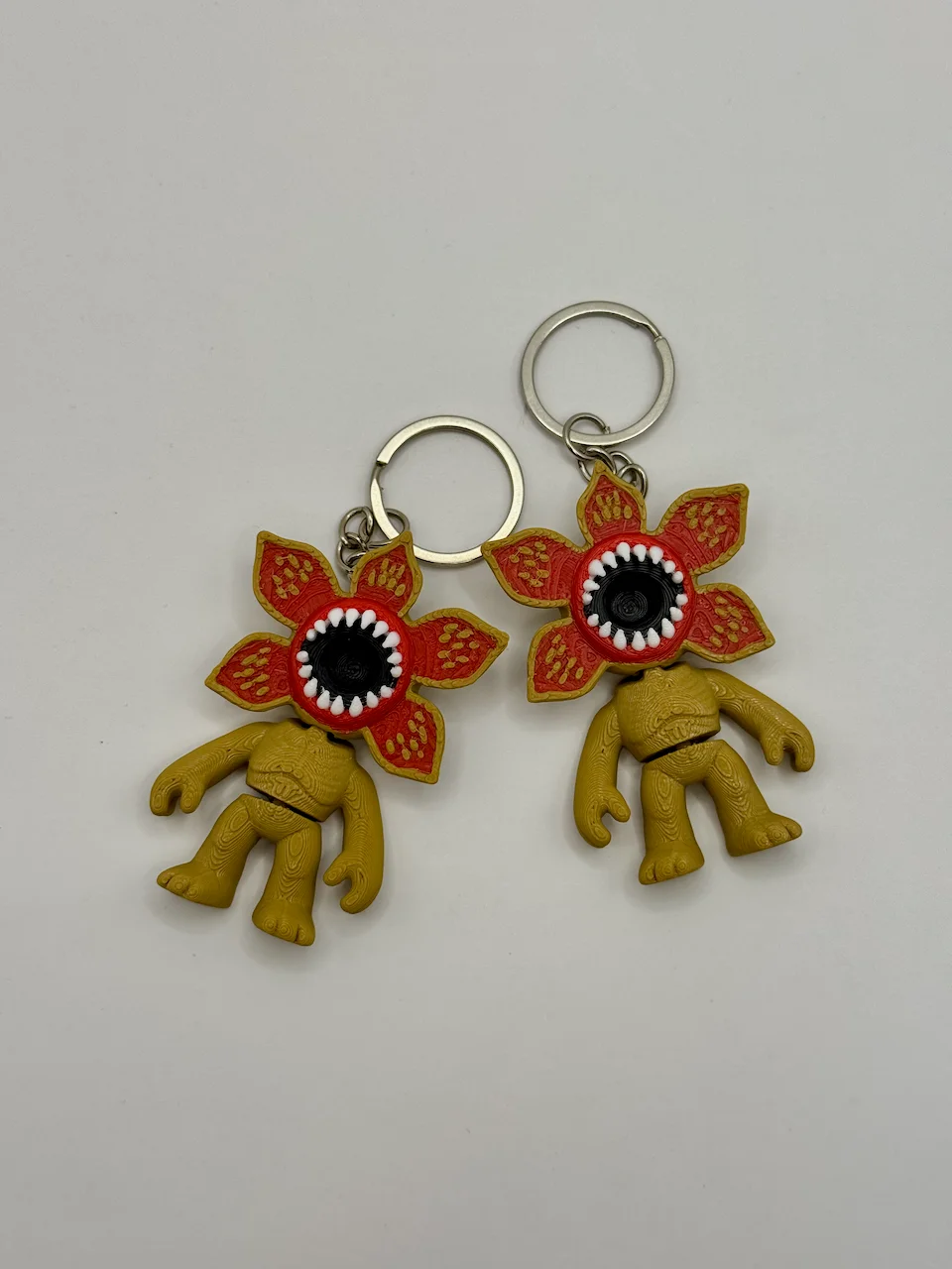 Add a touch of the Upside Down to your everyday carry with this Demogorgon flexy keychain. Inspired by the iconic creature from a popular sci-fi series, this keychain features a flexible, articulated design that makes it fun to handle while remaining practical for daily use.