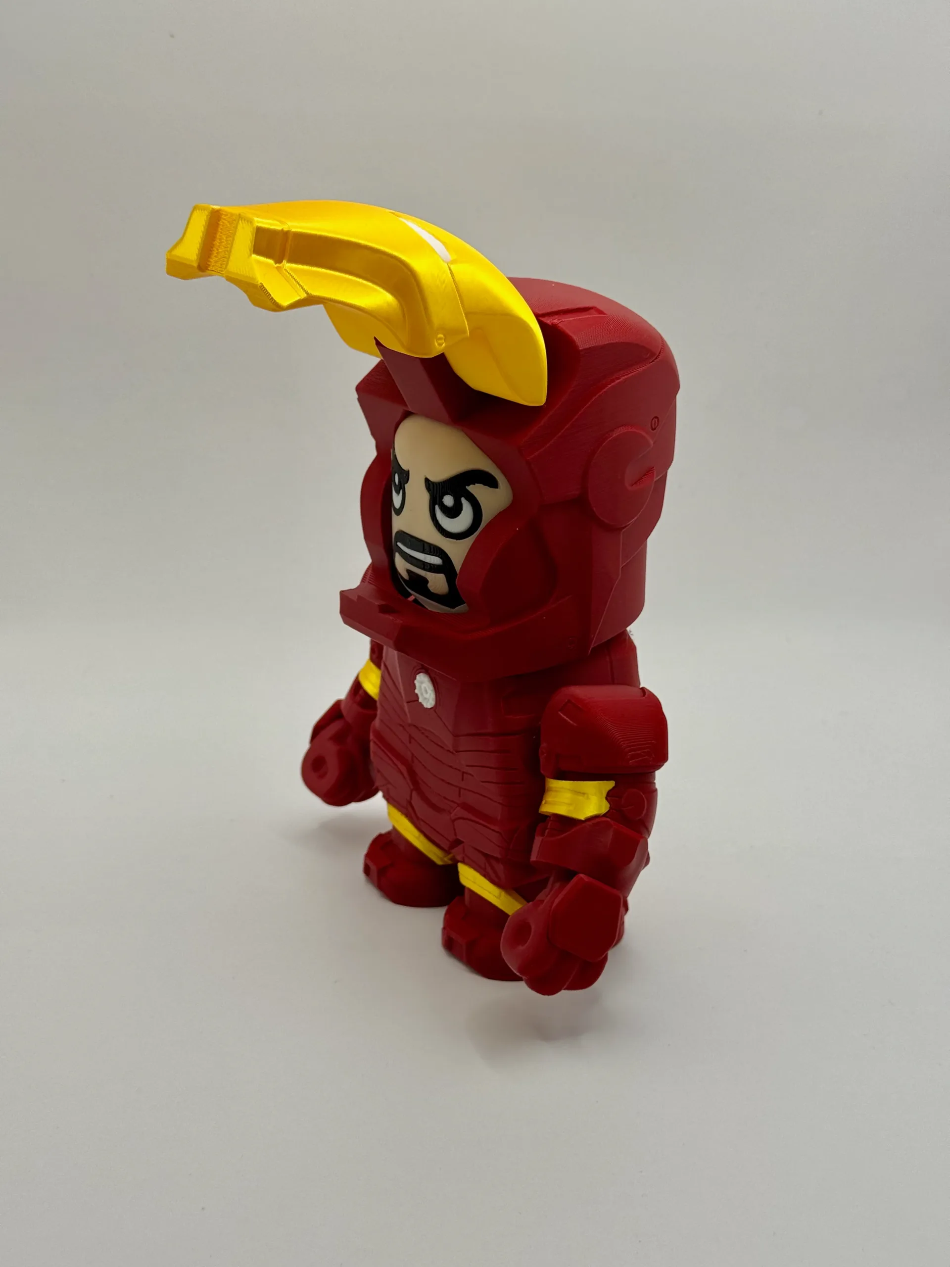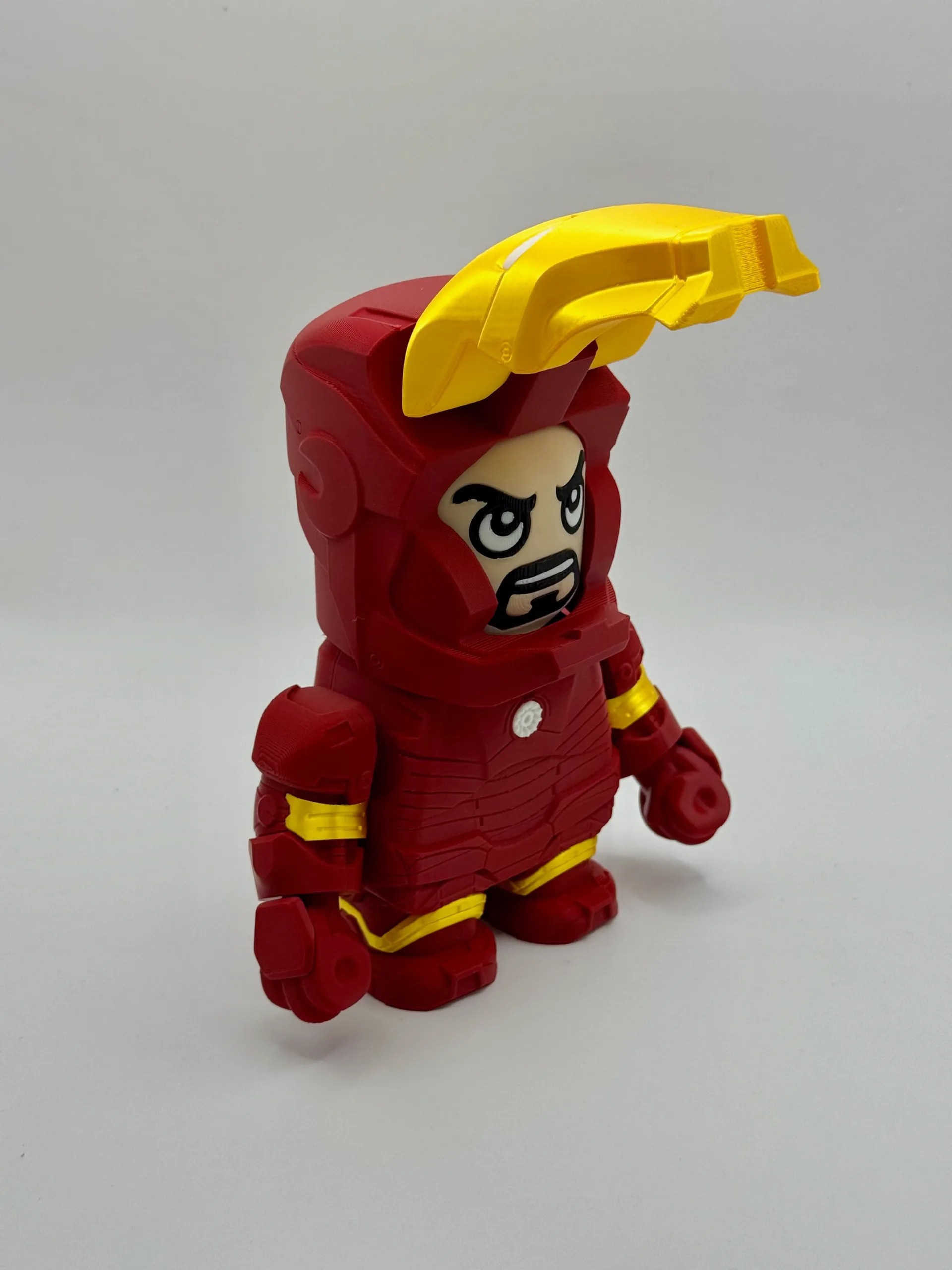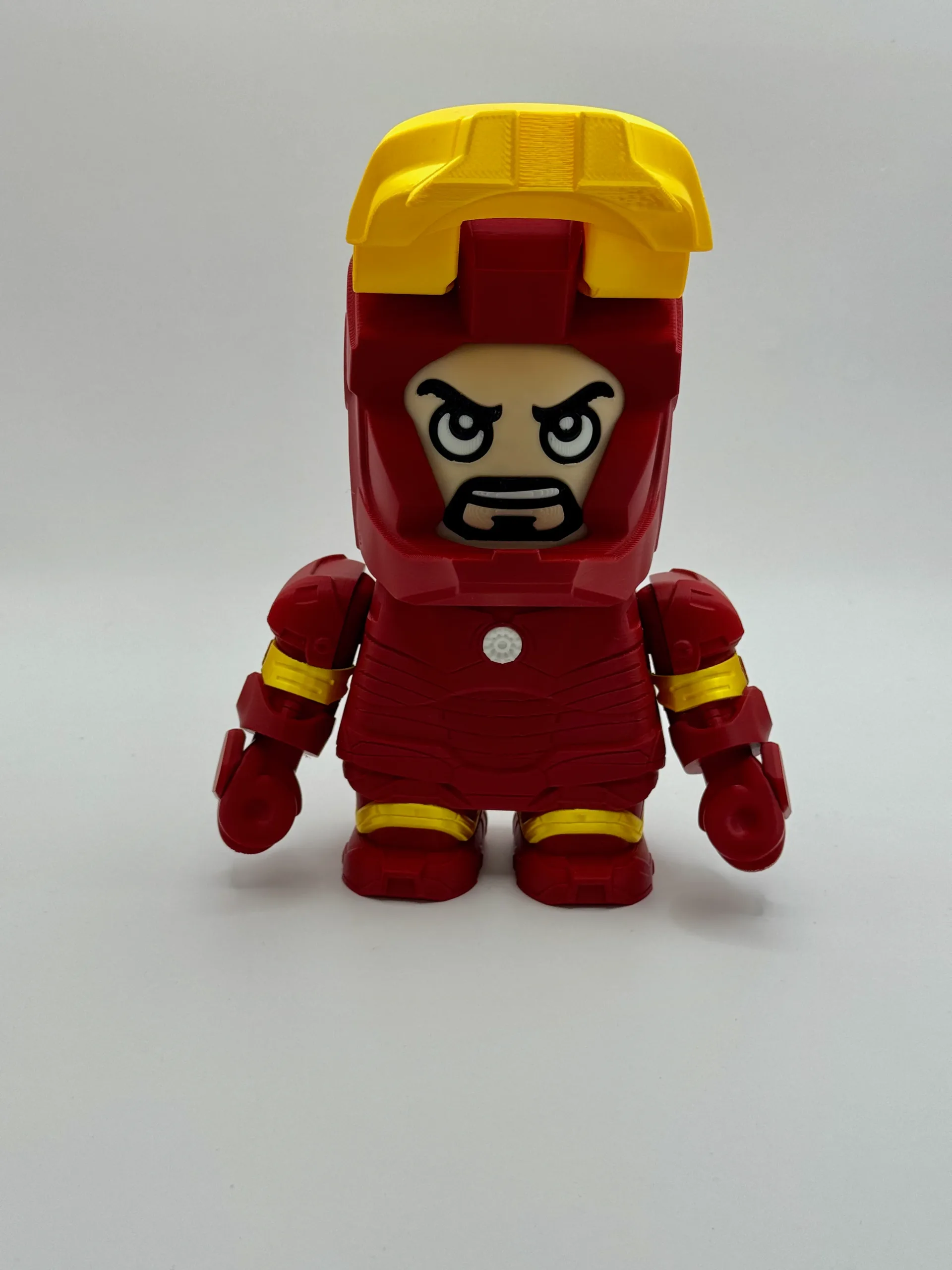 Tony Stark’s iconic armor reimagined in bold, compact style — full of power, attitude, and heart.